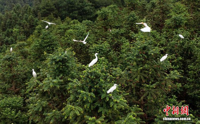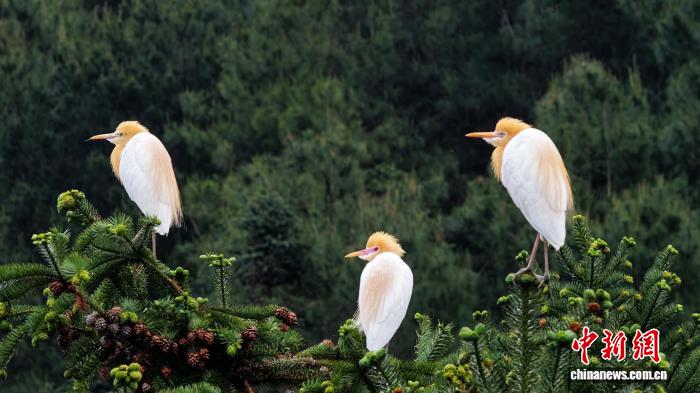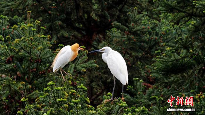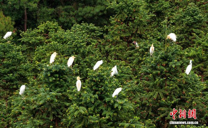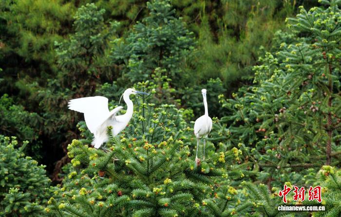 图为鹭鸟正在栖身。龚普康 摄